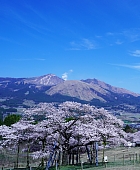 この桜の近くに馬頭観音様が祀ってあり、そこからこの桜は「観音桜」と呼ばれているそうです。中岳、高岳等の阿蘇の山々をこの桜の背景に成る様に眺めて見ると、その眺めは雄大で絶好のロケーションとなっていますので是非阿蘇五岳を背景にカメラに収めてみましょう。