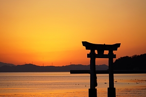 宇城市不知火町に海岸の海の中に祭られている不思議な鳥居があります。