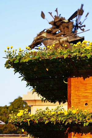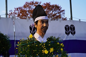 又菊池市の歴史を伝える菊人形も登場して南北朝時代に菊池一族が奮戦した「太刀洗いの場」や、「袖ヶ浦の訣別」などの場面が繊細な菊人形で再現されました。