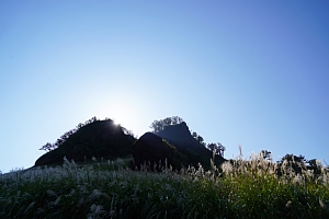 山方面が日の出方向となり逆光となりましたがススキの野原とラクダのコブの様に突き出ている岩の山々とのコラボで写真を撮って来ましたので紹介いたします。